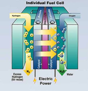 La pila de combustible sería un dispositivo que combinase ambas ideas: la de combustible y la de la pila eléctrica. Es una célula cuyas reacciones químicas no implican el uso de metales caros, sino de combustibles baratos. La energía química de dichos combustibles se convierte en energía eléctrica en un solo paso, con una pérdida mucho, menor que en el procedimiento normal de dos etapas. De este modo se puede multiplicar sustancialmente la cantidad de electricidad disponible por el hombre.