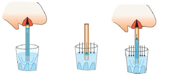 Nueva teoría. La presión del aire sobre la pajita y sobre la superficie del líquido son iguales